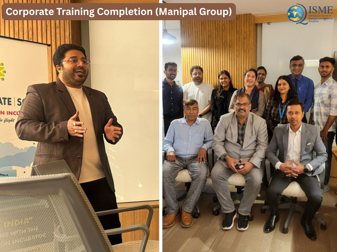 | | | | ISME successfully conducted the Corporate Training Certificate Program in Entrepreneurship for the Manipal Group from 16th September to 21st November. Participants showed strong engagement, completed the program, and received certificates. | | |