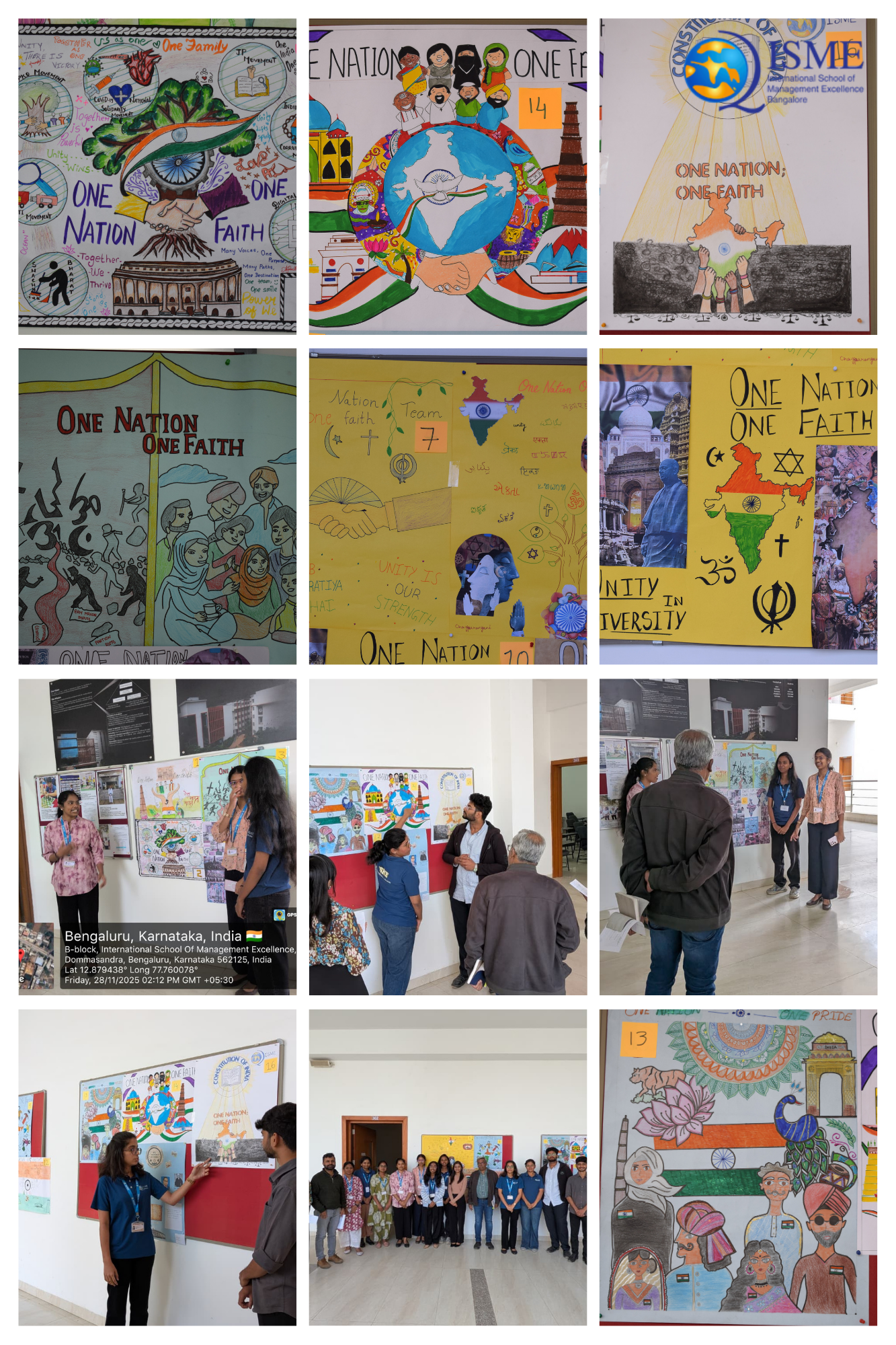 | | On 26th November, we proudly celebrated Constitution Day with a meaningful initiative organized by the UG Welfare Committee , a Poster Presentation Competition themed “One Nation, One Faith.” The event showcased the creativity and civic awareness of our students as they reflected on the spirit of unity, shared values, and constitutional principles that bind us together as a nation. Their posters beautifully captured how our Constitution continues to guide us toward justice, equality, and harmony despite our diverse identities. | | |