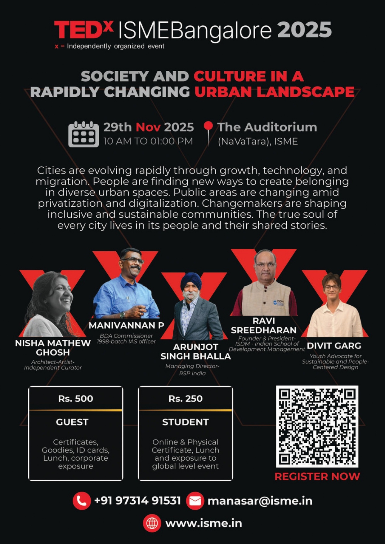 ISME proudly hosted MILAAP 2025, the annual alumni meet celebrating 20 glorious years of the institution’s legacy. The event brought together alumni, faculty, and leadership for an evening filled with nostalgia, inspiration, and togetherness. The celebrations began with a warm welcome and a grand Curtain Raiser, officially marking ISME’s 20-year milestone. Addressing the gathering, Ankit, Amrutha, and Director Dr. Nitin Garg reflected on the institute’s remarkable journey and the strength of its alumni network. The Alumni Success Celebration highlighted the outstanding achievements of ISME graduates across the last 20 years, followed by the presentation of the 'Memory Lane' segment which revisited cherished campus moments. The evening concluded with networking, music, dinner, and dance creating a joyful atmosphere of camaraderie. | | | | We are delighted to announce that Barani Devi, a dedicated first-year PGDM student at ISME Bangalore, has achieved an exceptional milestone by winning the Gold Medal in the Women’s U-58 Kg Category at the Bangalore University Inter-Collegiate Weightlifting Competition, held at Jyothi Institute of Commerce. Her remarkable strength, discipline, and perseverance has brought immense pride to the ISME community. Building on this outstanding achievement, Barani Devi will now represent ISME and Bangalore University at the Inter-University Weightlifting Competition, competing against top athletes from across the region. We wish her continued success and excellence | | | | ISME proudly celebrates the outstanding achievements of first-year B.Com students Kanisha Prabu and Swasti Agrawal at the BU Inter-Collegiate Swimming Competition. Kanisha won four Silver medals across multiple events, while Swasti secured three Bronze medals with strong performances. Their dedication and excellence in sports bring great pride to ISME and inspires their peers to pursue their passions with determination. | | |  | The TEDxISME Bangalore 2025 event on “Society and Culture in a Rapidly Changing Urban Landscape” was successfully organized at ISME on 29th November 2025. The inspiring lineup of speakers and engaging discussions made it a truly impactful and enriching experience for all participants | | |