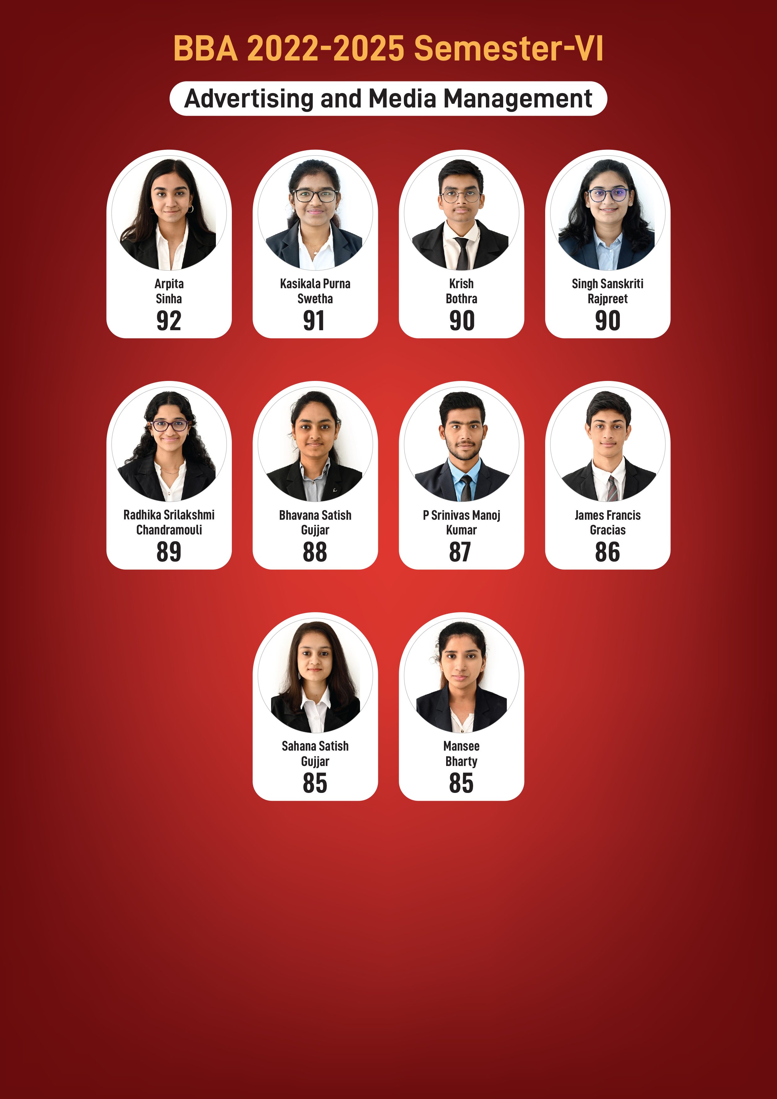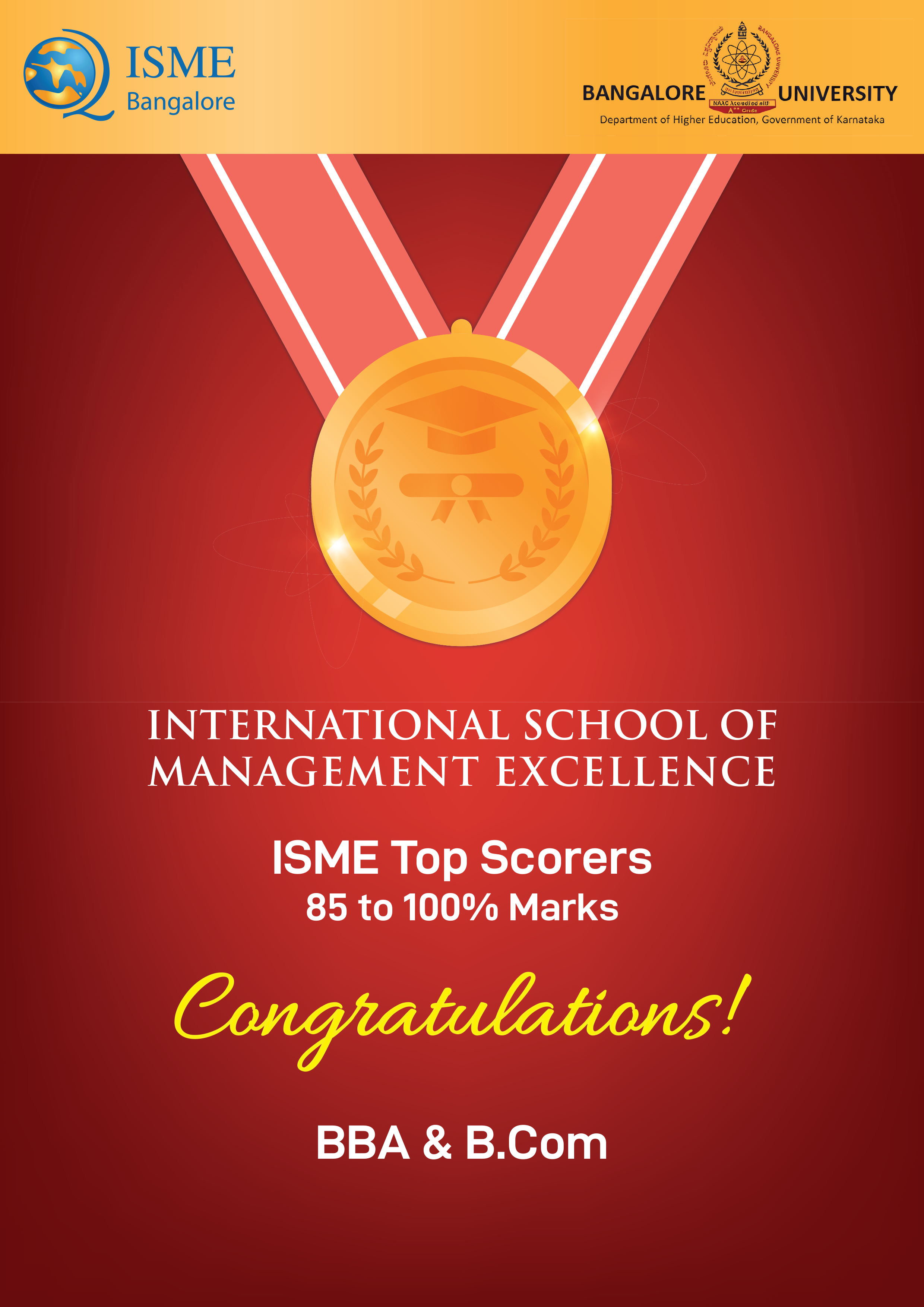 ISME, Bangalore congratulates our BBA and BCom students who have aced the Bangalore University Examinations. This has been possible due to the hard work of our students under the able guidance and mentoring of our exceptional faculty and our belief of having smaller batch size of students per class for giving Individual Attention.