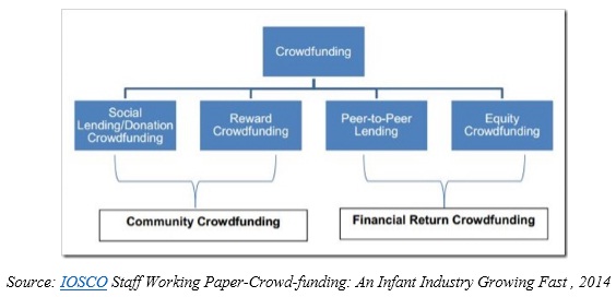 The IOSCO Staff Working Paper – Crowd-funding: An Infant Industry Growing Fast, 2014 identifies four different models of crowdfunding: Donor based, reward based, equity based and lending based (Peer to Peer).