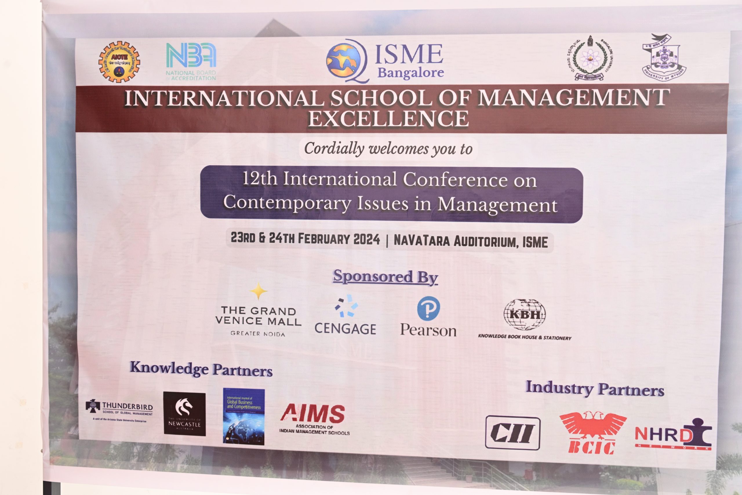 12thINTERNATIONAL CONFERENCE ON CONTEMPORARY ISSUES IN MANAGEMENT – CIM24 , 23rd and 24th February 2024@ ISME, BENGALURU, INDIA.