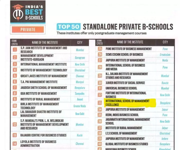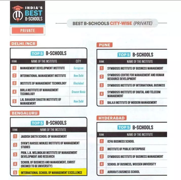 Top 30 B- School in India(TOI, India Today, Business India and CSR):
