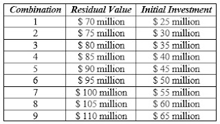 You are required to conduct a two-variable sensitivity analysis, for a series of values of residual value and initial investment as below: