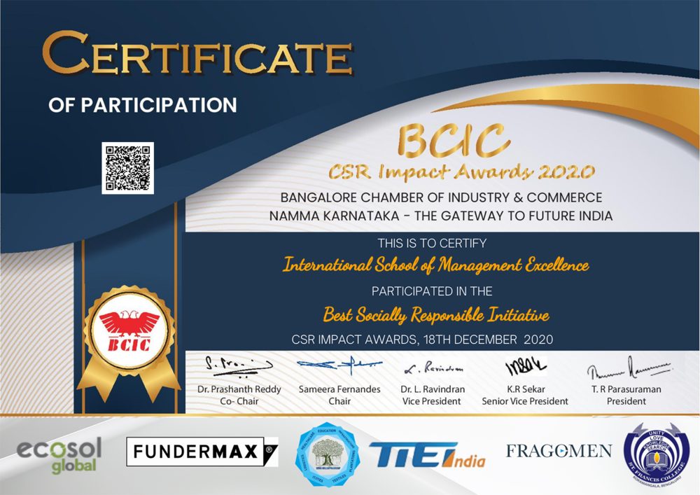 As individuals when we grow, it becomes our duty to give back to the society in which we grew up in. The CSR club of ISME takes responsibility to work for the society. The students of CSR club visit the local community around the college, they collect various information regarding their livelihood, they will make the note of the amenities that are missing and overall will try to improve their livelihood by conducting various donation drives. Various workshops are conducted to make students aware of the impact and importance of CSR in today’s time. CSR students have helped the people during this pandemic and have created an impact in there nearby areas. Students have helped in generating awareness among the people about Covid-19. CSR club truly helps and ISME student become a global student.