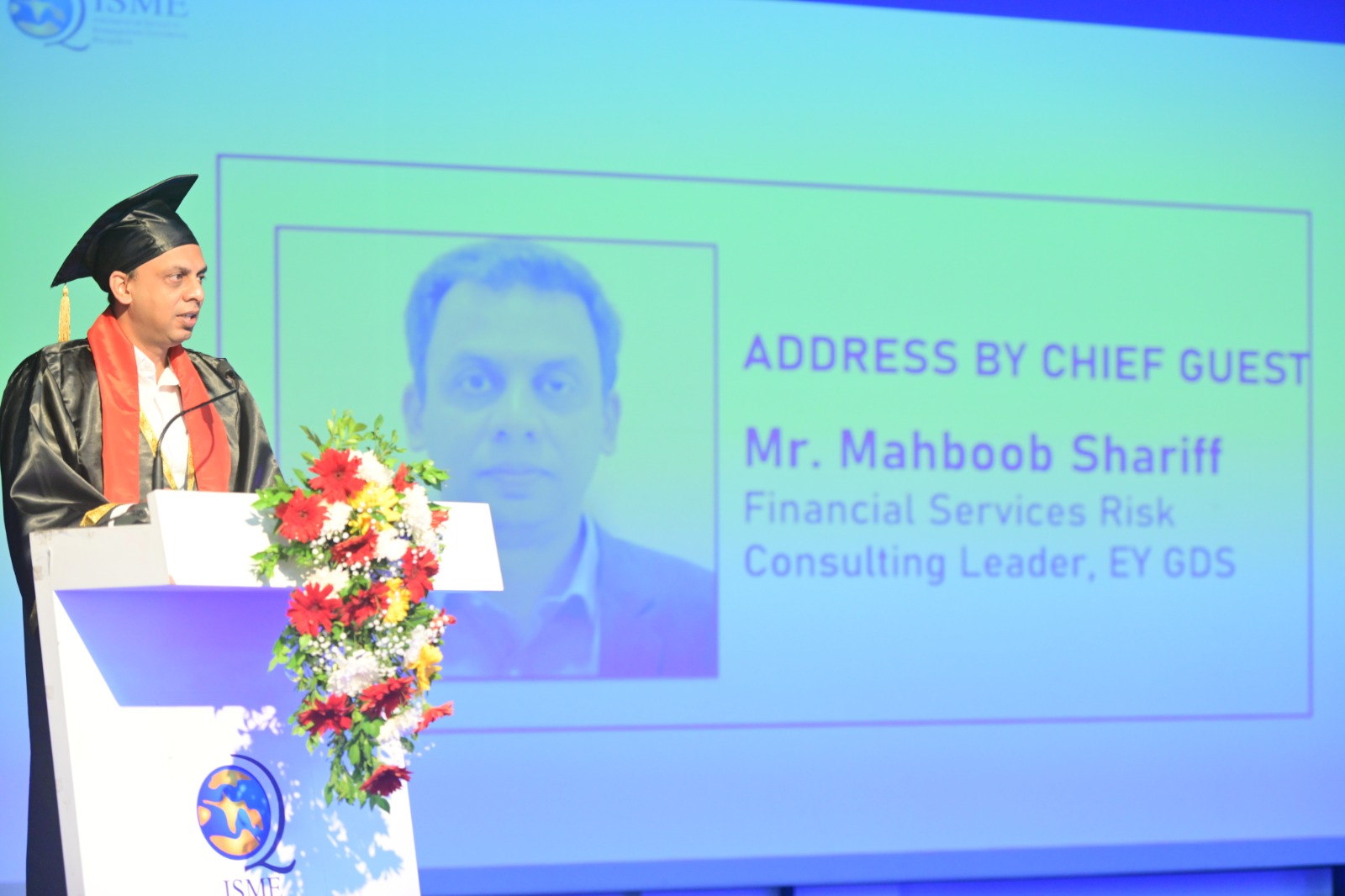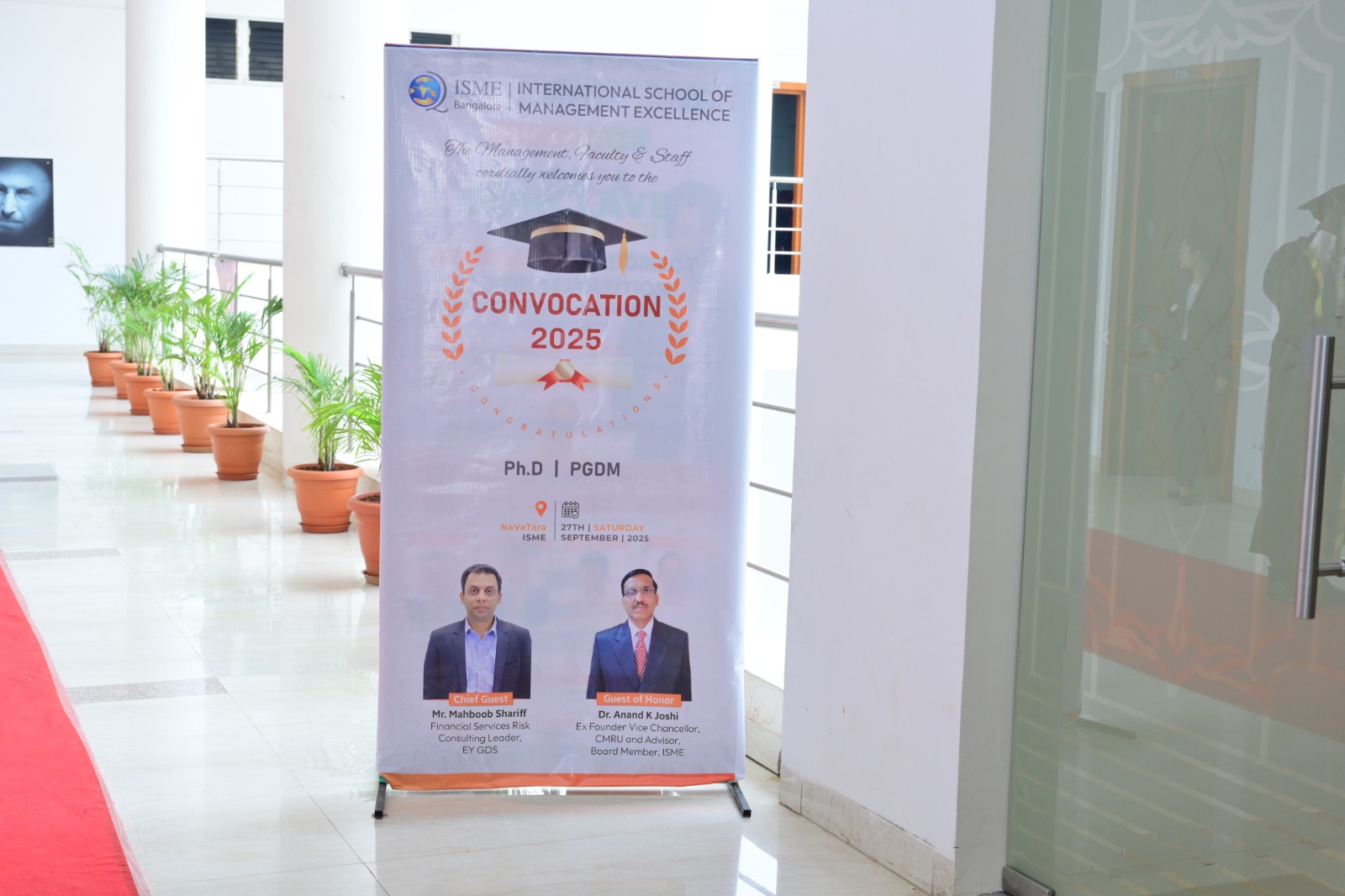 The International School of Management Excellence (ISME), Bangalore, hosted its Convocation 2025 on Saturday, 27th September, at the on-campus NaVaTara Auditorium. The ceremony honored graduates of the Ph.D. and PGDM programs and was graced by Mr. Mahboob Shariff, Financial Services Risk Consulting Leader at EY GDS, as Chief Guest, and Dr. Anand K. Joshi, Ex Pro Vice-Chancellor of CMRU and ISME Board Member, as Guest of Honor. With dignitaries from academia and industry in attendance, the event celebrated scholarly achievement and underscored ISME’s commitment to academic excellence, innovation, and leadership. Graduates were encouraged to make meaningful contributions beyond academia.