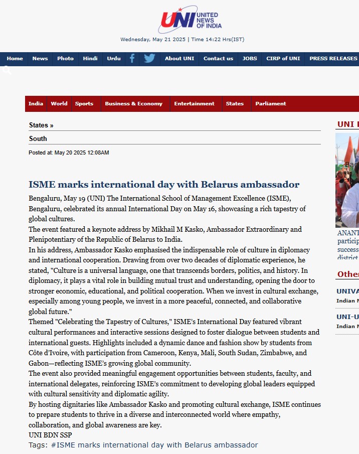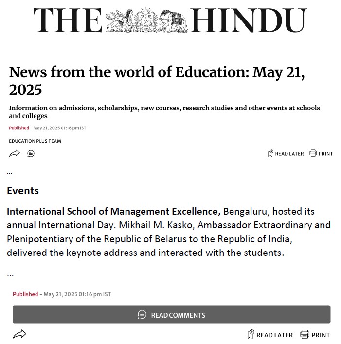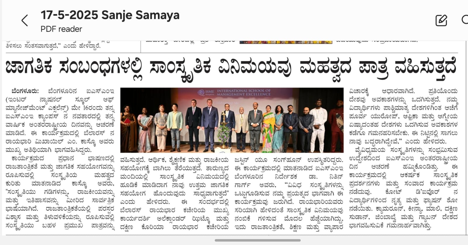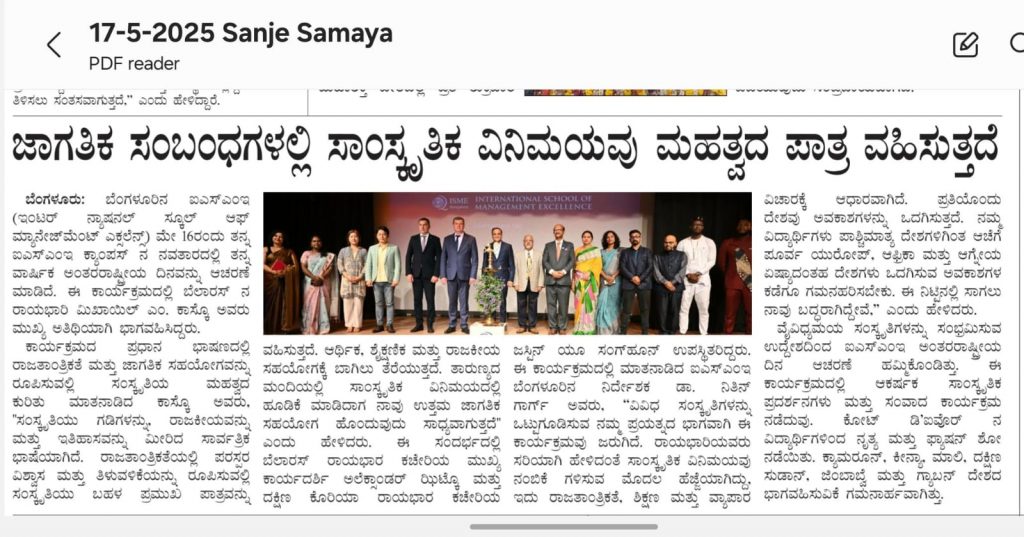 BBA (AICTE, Bangalore University) + International Business Certification Program from MDIS, Singapore
